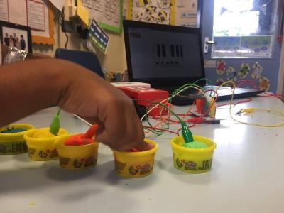 Her first stop was at Stoke Mandeville Combined School in Aylesbury where they have a Teacher of the Deaf and a resource base for deaf/hard of hearing children. She introduced the base to the world of the brilliant Makey-Makey kits. For them, she felt that this would be a great hands-on and tactile introduction to sound and technology, as well as allowing scope for their own creative ideas.